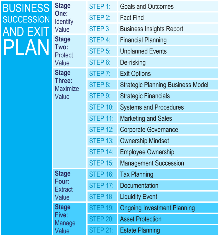 Successful exit and succession planning hinge on three critical aspects. First, the business must be primed and ready, with risks managed and preparations in place for ownership and management transitions. Second, the financial aspect, encompassing both business and personal finances, is pivotal. Adequate readiness for retirement or embarking on the next venture is crucial. Finally, your post-business plans play a vital role in a seamless exit.